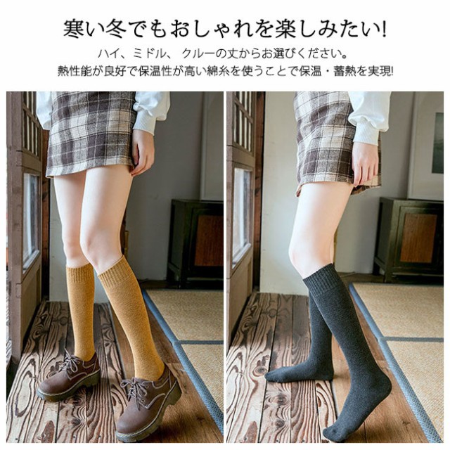 セット 3枚ソックス 冬 ハイ丈 レディース ストレッチ 靴下 伸縮性 リブ 冬