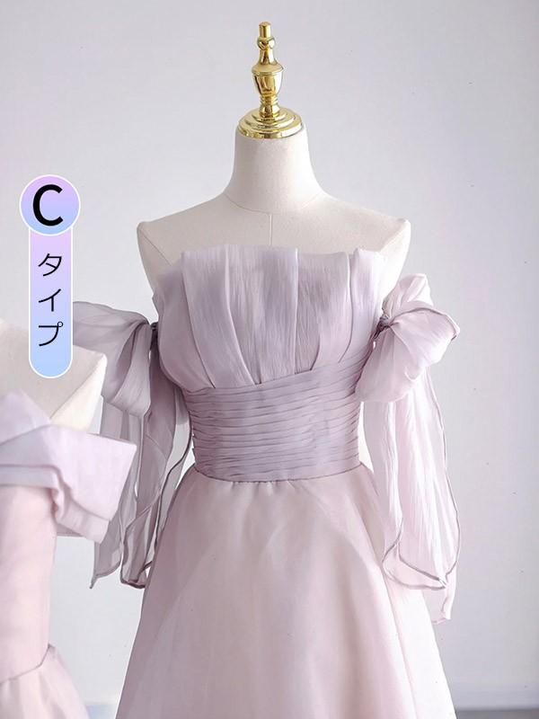 【送料無料】ブライズメイド ドレス 大人 ピアノ 発表会 ロングドレス オフショルダー 演奏会 結婚式 母親 ピアノ発表会 ピンク×パープル 袖付き