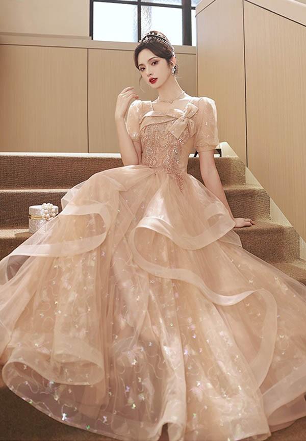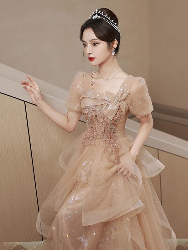 【送料無料】ドレス 大人 ピアノ 発表会 ロングドレス 演奏会 結婚式 母親 ピアノ発表会 袖付き ワンピース 半袖 演奏会ドレス 演奏会用ドレス パーティードレス