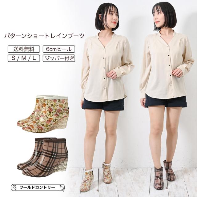 レインブーツ ショートブーツ フェミニン ハイヒール レディース 長靴 雨具 かわいい 可愛い おしゃれ お洒落 ガーデニング 庭いじり 雨 梅雨 雨 靴 通学 通勤 レインコート 大人 ショート レインシューズ ブーツ ロング 丈 防水 梅雨対策 晴雨兼用 チェック 花柄 柄入り