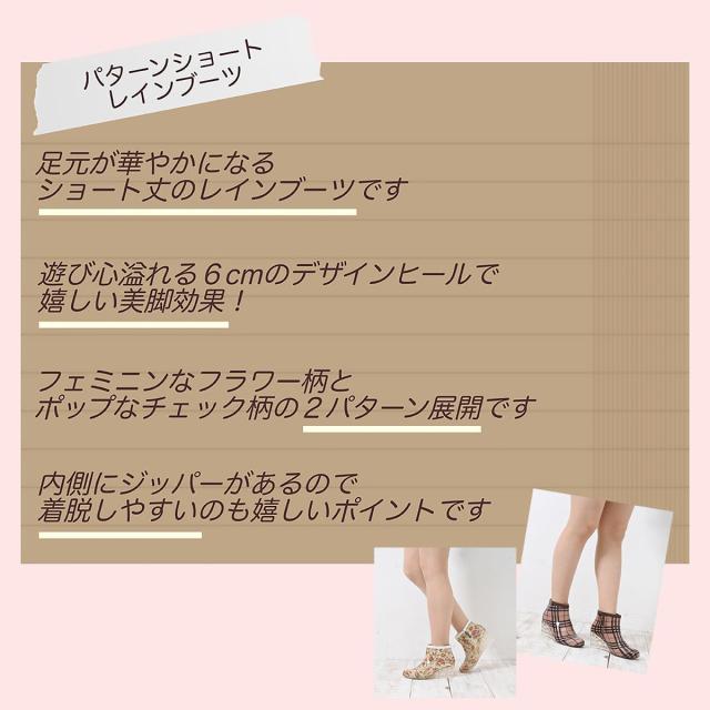 商品説明 | ・足元が華やかになるショート丈のレインブーツです ・遊び心溢れる6cmのデザインヒールで嬉しい美脚効果! ・フェミニンなフラワー柄とポップなチェック柄の2パターン展開です ・内側にジッパーがあるので着脱しやすいのも嬉しいポイントです |