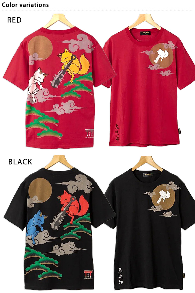 愛らしい狐のキャラクターが主役の【今昔】から「赤鬼青鬼半袖Tシャツ(KJ-26011)」のご紹介です。 赤鬼と青鬼に扮した今昔狐がモチーフの半袖Tシャツが登場しました。 ボディーには軽い着心地の綿生地を採用。 | |||||||||||||||||||||||||