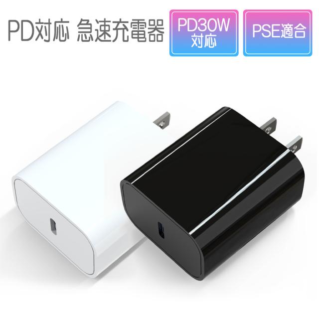 USB充電器 Type-C PD対応 最大30W出力 出力1ポート ホワイト/ブラック Android iPhone iPad PSE適合