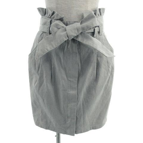 【中古】フラワー flower スカート デニム タイト ミディ丈 ストレッチ フリル リボンベルト コットン混 グレー系