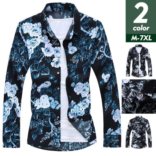 カジュアルシャツ メンズ シャツ 春服 花柄シャツ 長袖 アロハシャツ トップス シンプル カジュアル お兄系 アメカジ おしゃれ