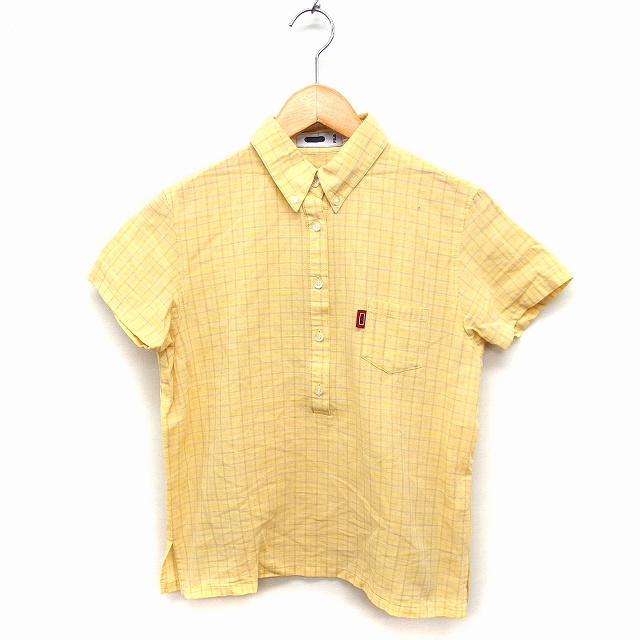 【中古】フィラ FILA 国内正規品 ボタンダウン シャツ ブラウス 半袖 ハーフボタン チェック柄 綿麻 M イエロー 黄 /FT