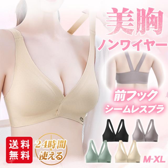 ナイトブラ 24時間使える フロントホックブラ ブラジャー ノンワイヤー シームレス 美胸 パッド付き 取り外し可能 インナー 下着 リラックスブラ 前ホック