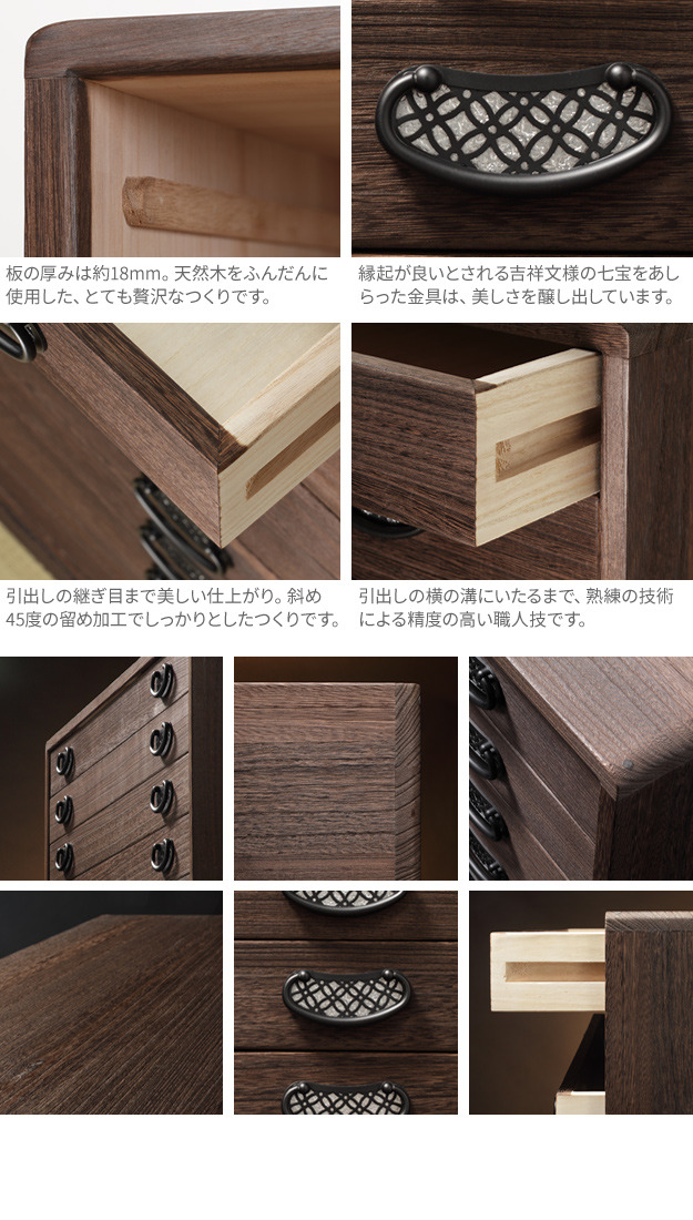 【仕様】本体:天然木(桐)加工:字造り・との粉ロウ引き仕上げ・焼桐仕上げ金具:亜鉛合金(黒色)◎完成品【サイズ】幅98x奥行45x高さ41cm重量:約16kg引出し内寸:幅91x奥行40x高さ5.5cm