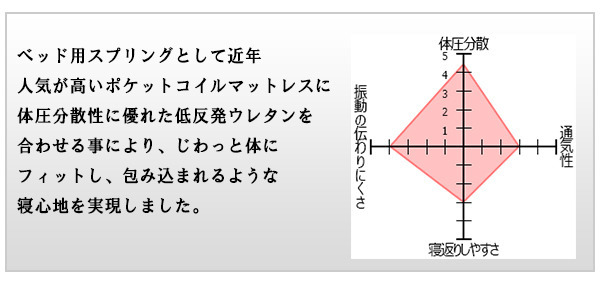 | 商品説明 | 棚と照明付きデザインベッド 国産低反発ウレタン入ポケットコイルマット付き■商品説明■フレーム寸法/幅213×奥行208×高さ66cmMH約42cm■マットレス寸法/幅100+100×奥行195×高さ23cm■本体主材/プリント化粧板、白熱灯(10W)1灯■マットレス主材/1.9mmポケットコイルスプリング(コイル数540+540個)30t厚低反発ウレタンフォーム、ウレタンフォーム、抗菌・防臭フェルト、ポリエステル綿混合張地、両面多針キルティング加工■生産国本体/日本マットレス/日本※こちらの商品はお客様組立商品となります。※大型商品の為日時指定不可となります。 |