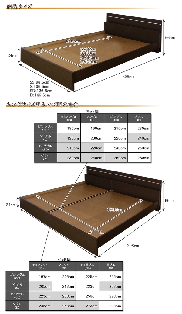 | 商品説明 | 棚と照明付きデザインベッド 日本製ポケットコイルスプリングマットレス付き■商品説明■フレーム寸法/幅293×奥行208×高さ66cmMH約39cm■マットレス寸法/幅140+140×奥行195×高さ20cm■本体主材/プリント化粧板、白熱灯(10W)1灯■マットレス主材/1.9mmポケットコイルスプリング(コイル数750+750個)、ウレタンフォーム、抗菌・防臭フェルト、ポリエステル綿混合張地、両面多針キルティング加工■生産国本体/日本マットレス/日本※こちらの商品はお客様組立商品となります。※大型商品の為日時指定不可となります。 |