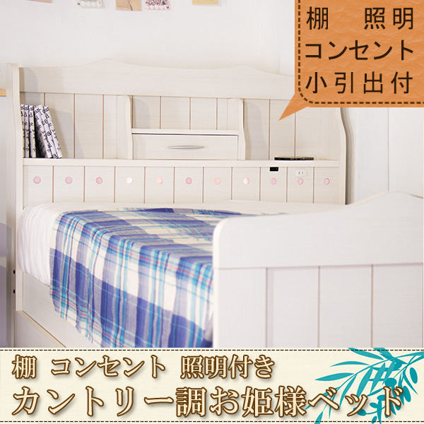 ベッド セミダブル 棚 コンセント 照明付き カントリー調 お姫様 ボンネルコイルスプリングマットレス付 to-10-318-sd-108165 店舗 カフェ ラウンジ ロビー ホテル 法人 フレーム マットレスセット ベッド 送料無料 北欧 モダン 家具 インテリア ナチュラル テイスト 新生
