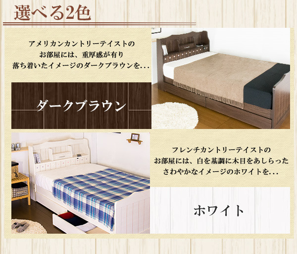 カントリー調デザインベッド セミダブル ボンネルコイルマットレス付き■商品説明■フレーム寸法/幅121×奥行215×高さ103cmMH約48.25cm■小引き出し内寸/W37.3×D8×H7.5、■マットレス寸法/幅120×奥行195×高さ17cm■本体主材/プリント化粧板、白熱灯(10W)2灯、1口コンセント(1200W)■マットレス主材/2.5mmボンネルコイルスプリング(コイル数264個)、ウレタンフォーム、フェルト、ポリエステル綿混合張地、両面多針キルティング加工■生産国本体/日本マットレス/中国※こちらの商品はお客様組立商品となります。※大型商品の為日時指定不可となります。