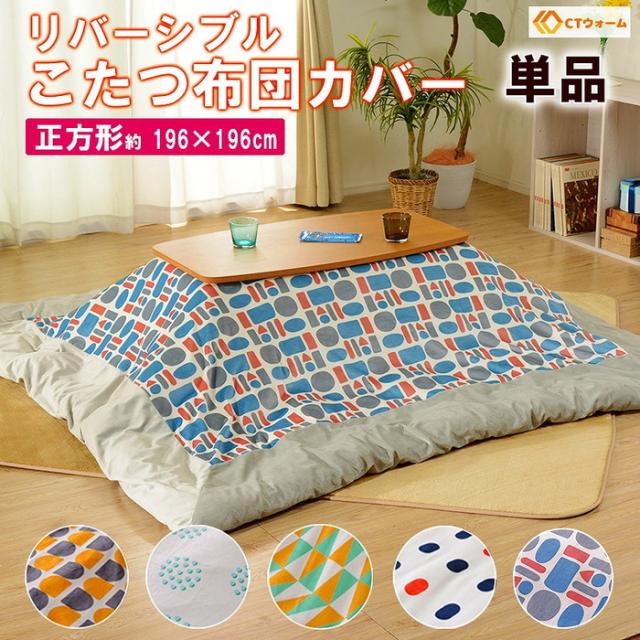 正方形のリバーシブルこたつカバー。カバーはオシャレな北欧柄、5種類からお選び頂けます。リバーシブルなので、飽きずにお使い頂けます。生地はCTウォームで、心地よい肌触りです。