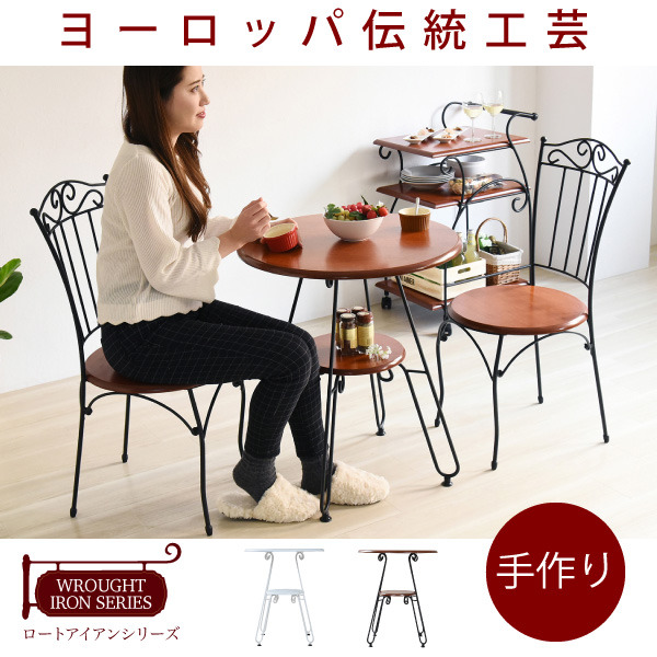 ロートアイアンの曲線が優雅で美しいカフェテーブル幅60。お部屋の中でカフェのようなお洒落な空間をつくってみませんか?スチールと木が融合したおしゃれなロートアイアンシリーズ。2人の距離が縮まりそうな幅60cmのコンパクトサイズ。テーブルの下にはラックがついているので、雑誌やリモコンなどをサッと片づけることができます。・アジャスター付き・六角レンチ同梱・商品によって色味や木目などの風合いが異なります。