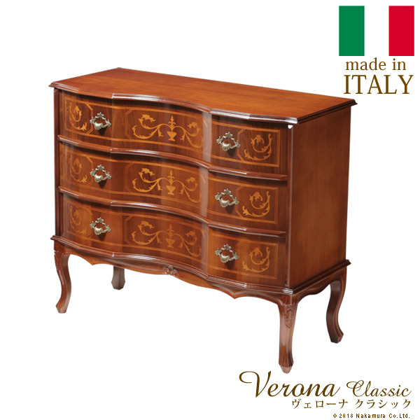チェスト 3段 猫脚 W87cm ヴェローナクラシック イタリア 家具 ヨーロピアン 収納 クラシック 輸入家具 アンティーク風 イタリア製 ブラウン 木製 天然木 高級感 エレガント リモート テレワーク 在宅 mu-42200001 店舗 カフェ ラウンジ ロビー ホテル 法人 タンス チェス