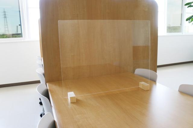 飲食店のテーブルや、カウンターにピッタリの飛沫ガードパネルになります。 卓上でも圧迫感を与えにくい枠無しタイプとなります。スペースに応じて3サイズをご用意しました。 (こちらはLサイズ約66×50cmとなります)