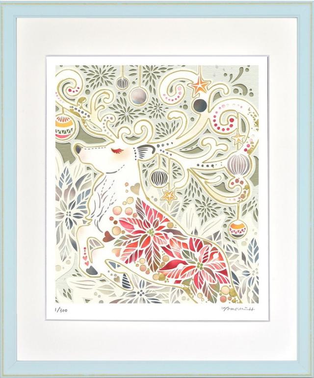 | 商品説明 | ・切り絵作家・原画の切り絵をデジタル印刷したアートです。・エディションナンバー入り(限定300枚)・プレゼント・ギフト・贈り物掲載された写真と、実際の商品の色、素材が異なって見える場合がございますのでご了承ください。1988年宇都宮生まれ。高校在学中にカラー切り絵に出会い、独学で切り絵の制作を始める。2009年より切り絵作家として個展やイベントで活動を開始。近年は白い紙をベースにカラフルな染め和紙の切り貼りで色付けする「白い切り絵」で、花や動物、女性や四季の風景モチーフに華やかに表現している。2016年より神奈川・東京を中心に切り絵教室を多数開催中。 付属品:ヒモ |