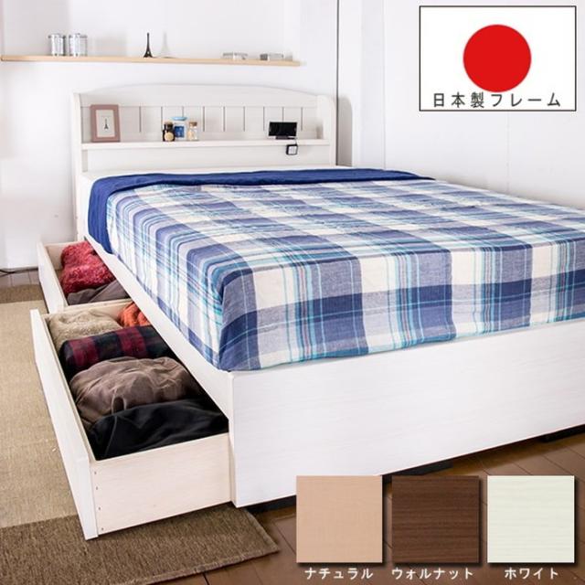 カントリー調引き出し付ベッド セミダブル ボンネルコイルマットレス付き■商品説明■フレーム寸法/幅120×奥行215×高さ79cmMH約42cm■引出し内寸/大:W約96×D約40×H約10cm、小:W約90×D約35×H約10cm■マットレス寸法/幅120×奥行195×高さ17cm■本体主材/プリント化粧板、1口コンセント(1200W)■マットレス主材/2.5mmボンネルコイルスプリング(コイル数264個)、ウレタンフォーム、フェルト、ポリエステル綿混合張地、両面多針キルティング加工■生産国本体/日本マットレス/中国※こちらの商品はお客様組立商品となります。※大型商品の為日時指定不可となります。