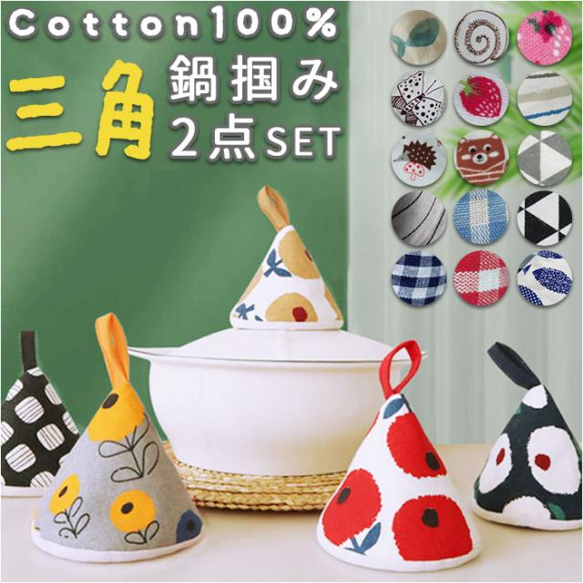 鍋つかみ 三角 2個セット 通販 三角鍋つかみ なべつかみ 2点セット 鍋掴み 三角なべつかみ おしゃれ かわいい 鍋 なべ コットン 綿 三角形 紐付き キッチンツール キッチン雑貨