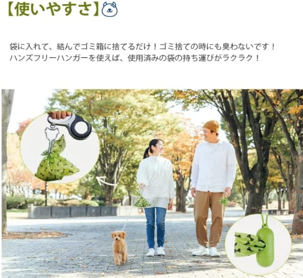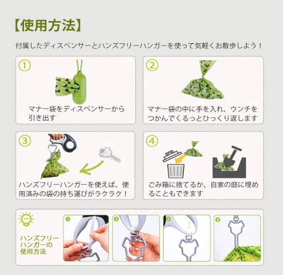 【セット】ポータブルな取り出し器により、袋をロールから簡単に取り出せます。ハンズフリークリップで、使用済みの袋をリーシュなどに付けられます