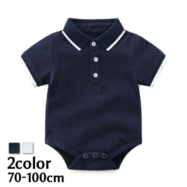 ロンパース カバーオール 子供服 ベビー キッズ 新生児 赤ちゃん 男の子 長袖 半袖 ポロシャツ風 股スナップボタン 襟付き