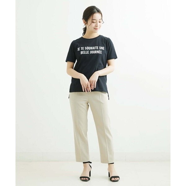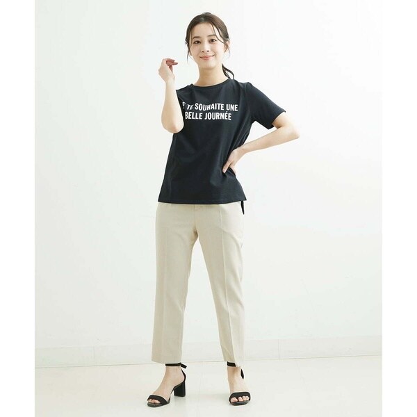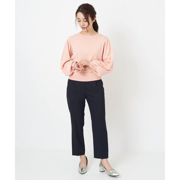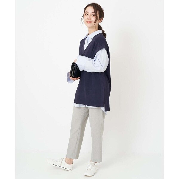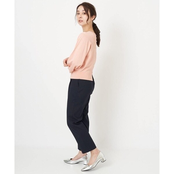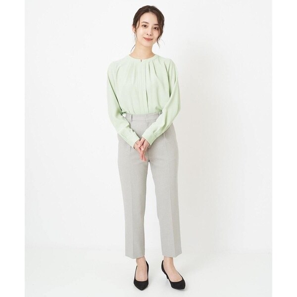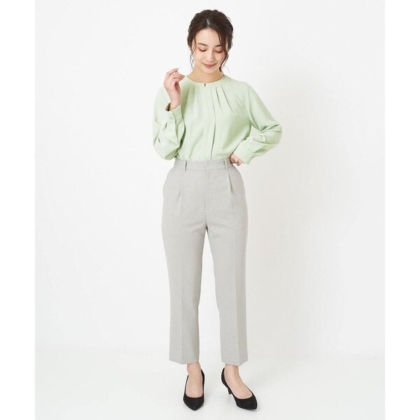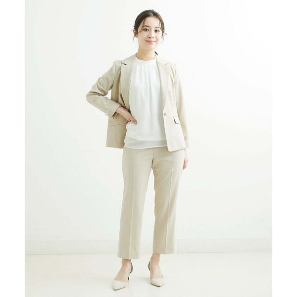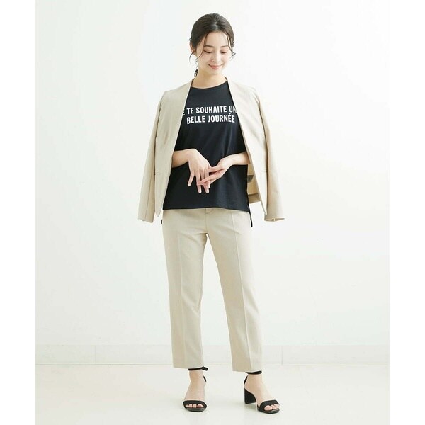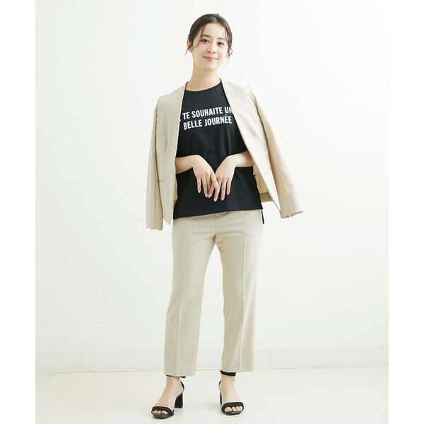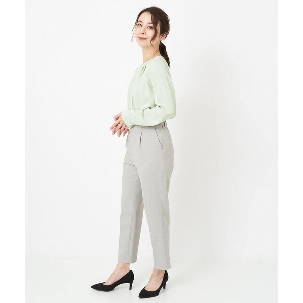 トレンド関係なく何年も穿きこなせるものだから、パターンにこだわった美脚シルエットテーパードパンツ。より脚がきれいに見えるよう、着心地の良さは残しながら、ウエスト寸法、ヒップ寸法をやや小さくしアップデートしました。フロントにタックを入れることで、お腹の丸みが目立ちにくい仕様に仕上げました。まっすぐめなウエストカーブでシャープな印象のウエストに。ウエストのタックから裾に向かってまっすぐにプレス線を入れることで縦長効果も。きちんとした見え感ながらも、後ろにゴムを入れることでストレスフリーな穿き心地を実現しました。