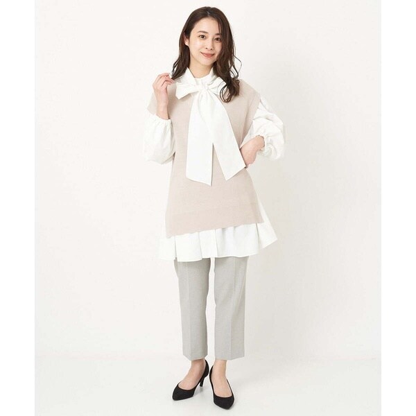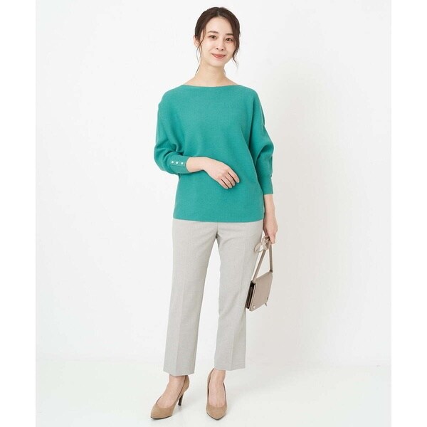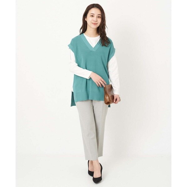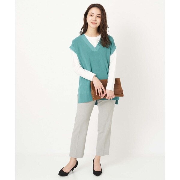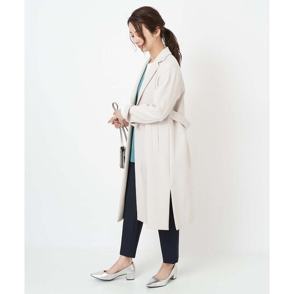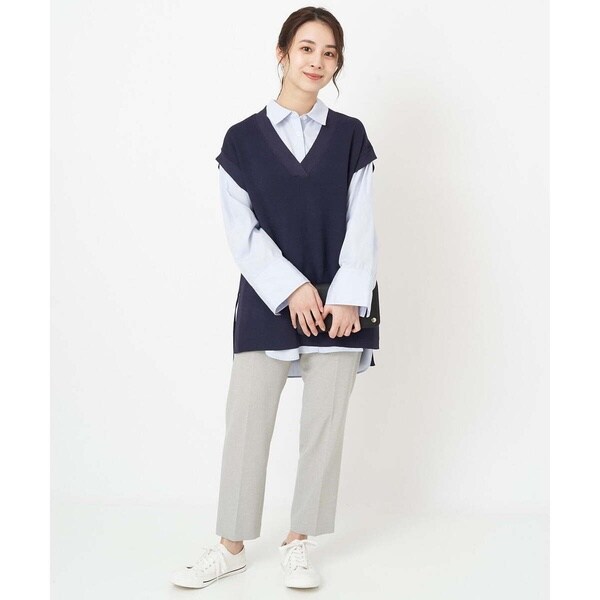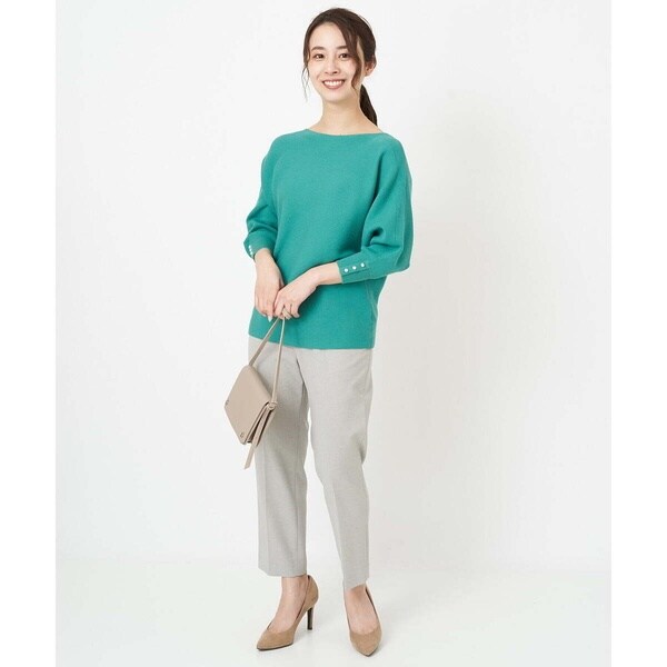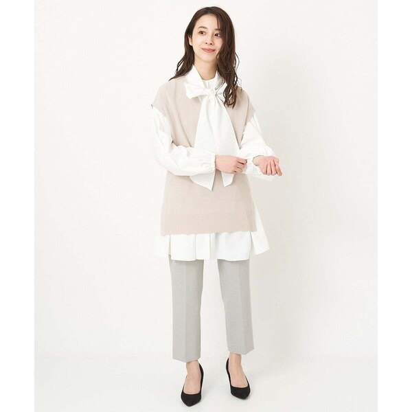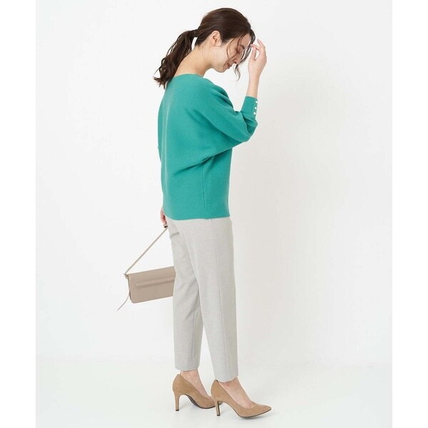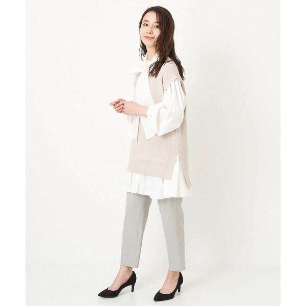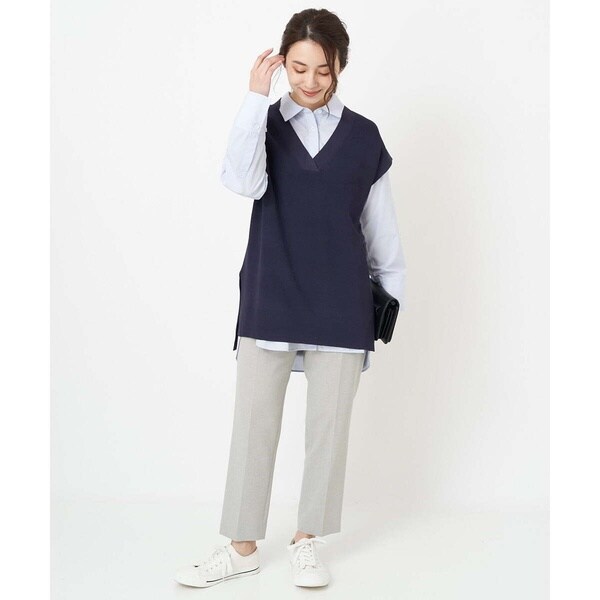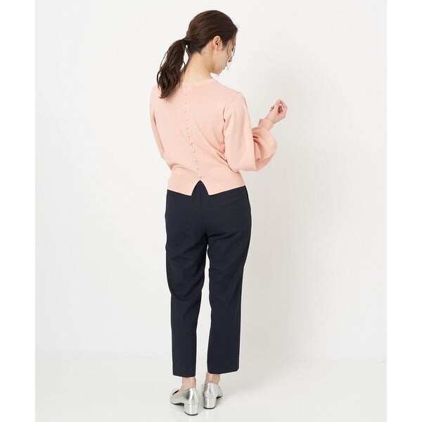 トレンド関係なく何年も穿きこなせるものだから、パターンにこだわった美脚シルエットテーパードパンツ。より脚がきれいに見えるよう、着心地の良さは残しながら、ウエスト寸法、ヒップ寸法をやや小さくしアップデートしました。フロントにタックを入れることで、お腹の丸みが目立ちにくい仕様に仕上げました。まっすぐめなウエストカーブでシャープな印象のウエストに。ウエストのタックから裾に向かってまっすぐにプレス線を入れることで縦長効果も。きちんとした見え感ながらも、後ろにゴムを入れることでストレスフリーな穿き心地を実現しました。