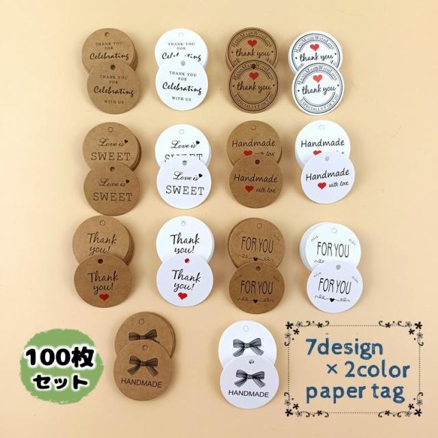 ギフトタグ メッセージタグ ペーパータグ 同色100枚セット thank youタグ サンキュータグ handmadeタグ ハン