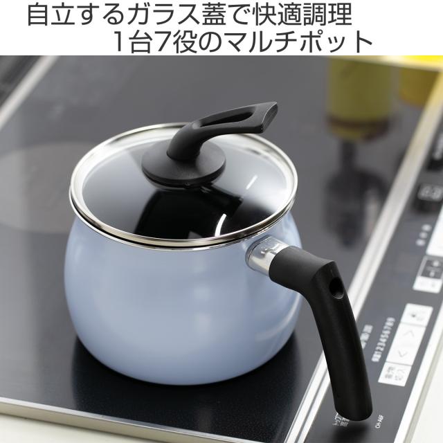 マルチポット 2.5L IH対応 スタンド蓋付き ( ガス火対応 片手鍋 天ぷら鍋 ソースパン フッ素加工 ガラス蓋 軽い 2.5リットル 15cm ミルクパン 片手なべ ケトル 揚げ鍋 万能 マルチ 自立蓋 アルミ製 )