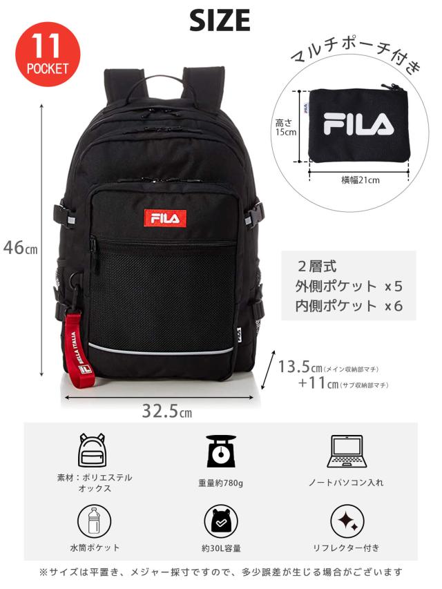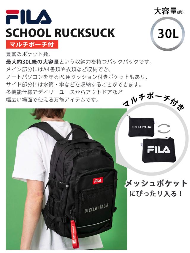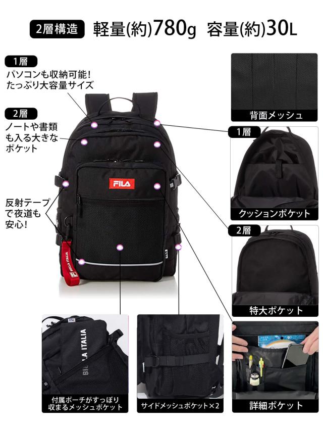 FILA フィラ リュックサック スクールリュック メンズ レディース ケース付き 大容量 30L 通学 高校生 中学生 女子 女の子 女性 通勤 大人 3層式 ブランド ロゴ おしゃれ 人気 アウトドア a4 b4 軽量 軽い 旅行 outfit ポイント消化
