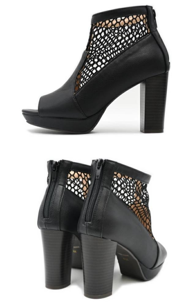 メッシュ使いがオシャレなブーツが登場!コットン生地の大きめメッシュを使い、重くならないさわ やかな足元を演出してくれます。リピーターさん続出の人気ヒールは、脚を細く長く見せてくれるス タイルアップ効果抜群。前部分も厚みのあるストームになっており、高さを感じずに履きやすいです。