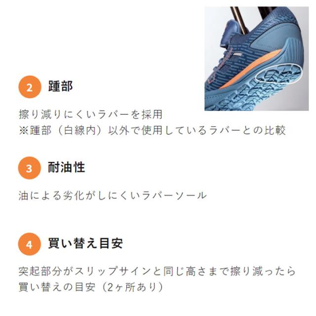 ・踵部の衝撃エネルギー吸収性、耐滑性