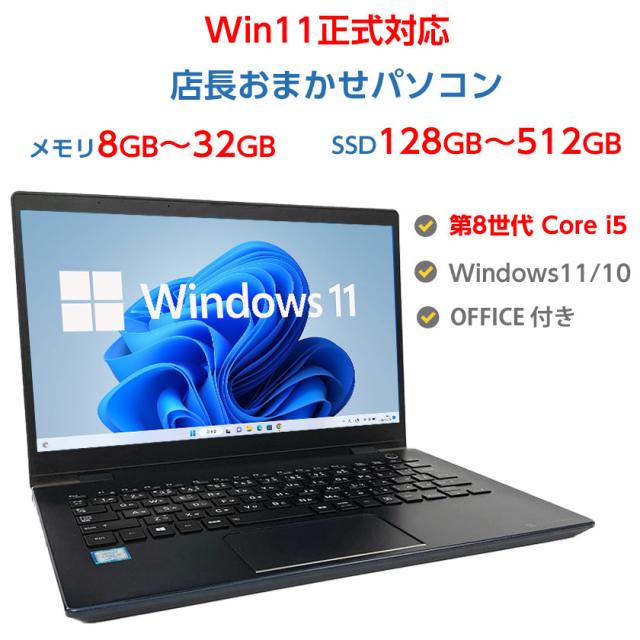 ノートパソコン 中古 パソコン Windows11 【正規品・Win11正式対応】高性能 第8世代 Core i5 メモリ 8〜32GB SSD128〜256GB 中古ノートパソコン Windows11/10 店長オススメ おまかせ 15.6型 無線LAN DVDドライブ OFFICE付き