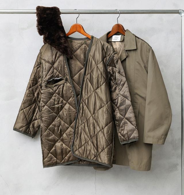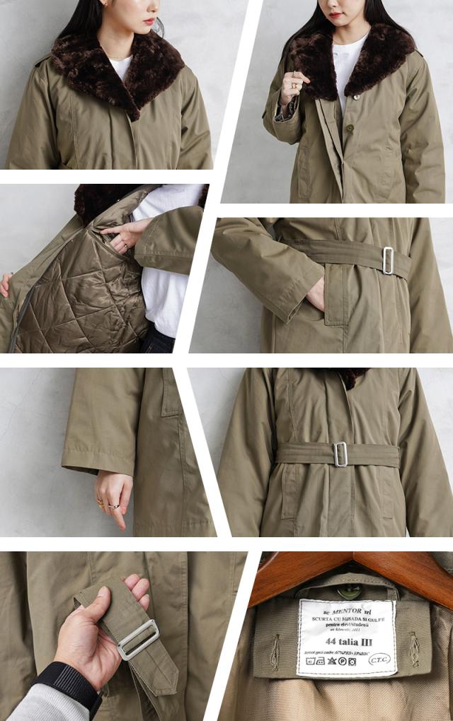 実物 USED ルーマニア軍 レディース BOA COLLAR オフィサーコート キルティングライナー付き【Cx】【I】|ミリタリー アウター ボア ロングコート 古着 ユーズド ベージュ 防寒 軍放出品 ビジネス おしゃれ