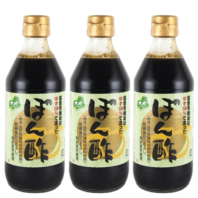 有機ゆず入り ぽん酢 360ml 3本セット 送料無料 センナリ 土佐産ゆず使用 枕崎産かつお 利尻昆布 生ぽん酢 広島 お土産