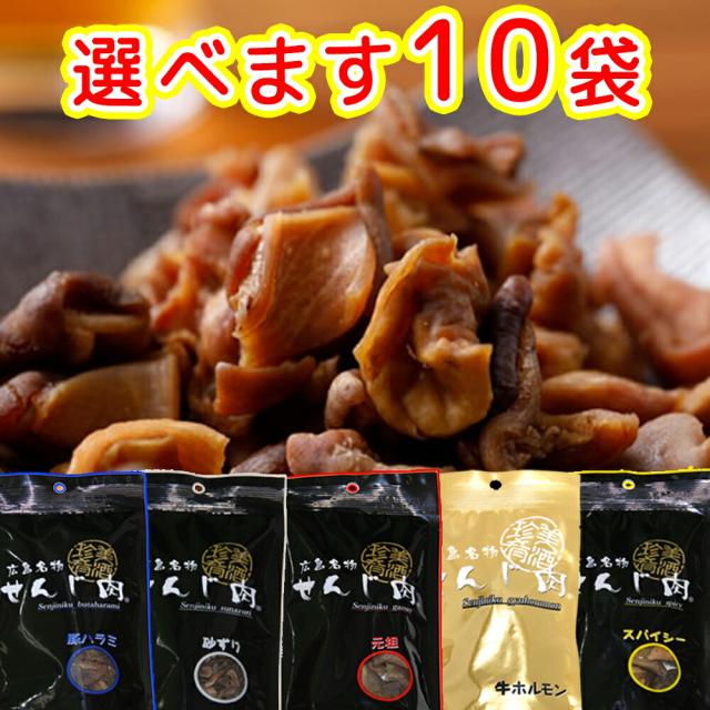 せんじ肉 選べます 10袋セット 送料無料 5種類からお好きなものどうぞ せんじ肉 おつまみ せんじがら 広島名物珍味