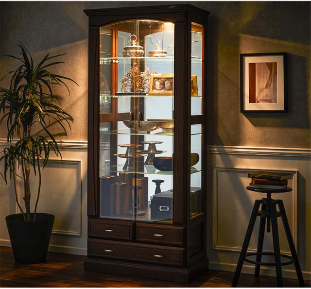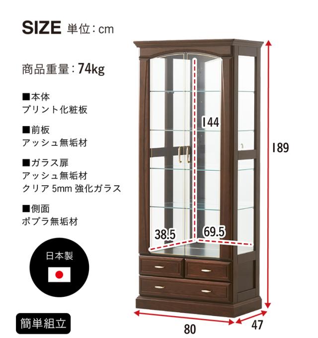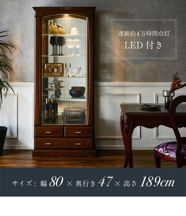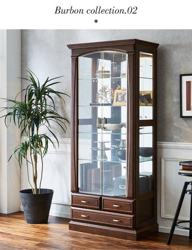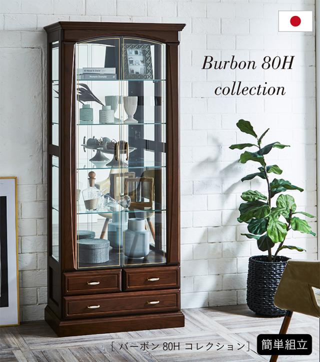 【搬入・組立設置付き/完成品】コレクションケース コレクションラック コレクションボード 幅80cm LEDライト 日本製 ハイタイプ 大型 ディスプレイラック ガラスケース お酒 スニーカー おもちゃ おしゃれ Burbon(バーボン)