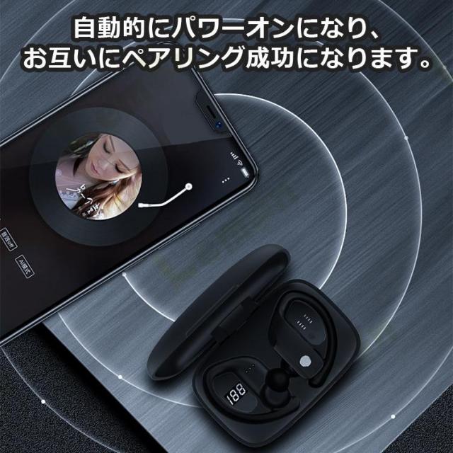 ワイヤレスイヤホン Bluetooth5.0 自動ペアリング 高音質 ノイズキャンセリング ブルートゥース 耳掛け式 イヤホン IPX7防水 低遅延 スポーツ ス付き 送料無料