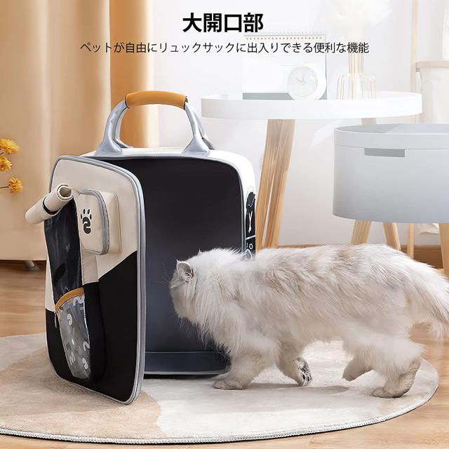 前面の大きな開口部のデザインは、ペットがバックパックに出入りしやすくなっています。