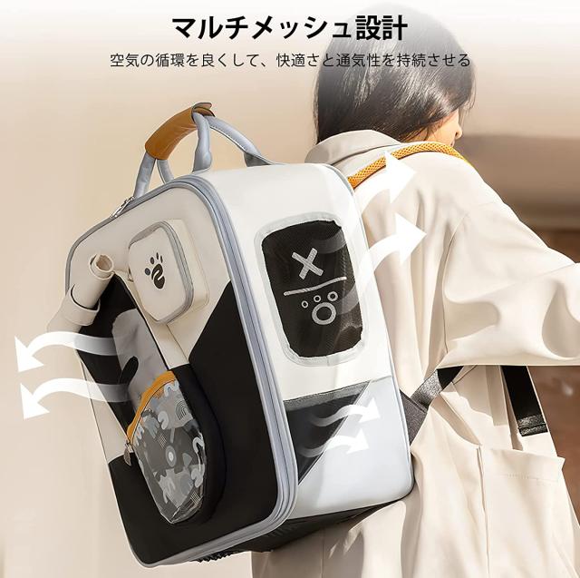 商品サイズ サイズ:36*20*42cm 体重7.5kg以下のペットに適しています ペット用バックパックの両サイドにPVCメッシュデザインを採用し、快適な通気性を実現し、旅行中のペットが快適に過ごせるようにしました。