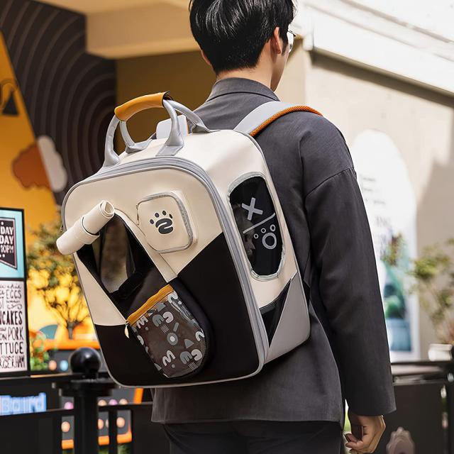 持ち運びが簡単 ペット用バックパックは、手でも両肩でも背負うことができます。