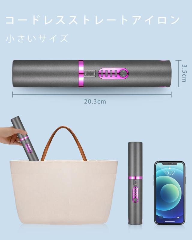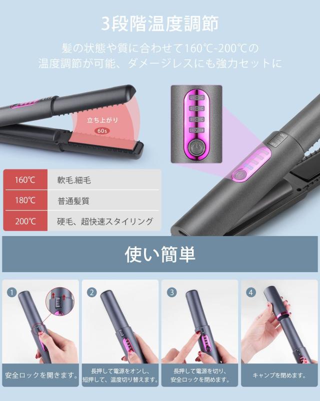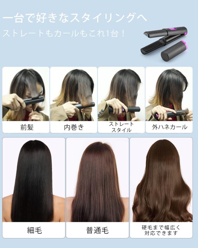 コードレスヘアアイロン type-c充電式ストレートヘアアイロン コードレス ミニ ストレート カール 2way
