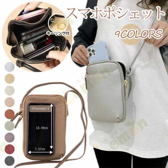 スマホショルダーバッグ スマホポシェット スマホポーチ おしゃれ 軽量 レザー 斜めがけ ショルダー ストラップ 縦型 iPhone13 カード入れ キーリング付