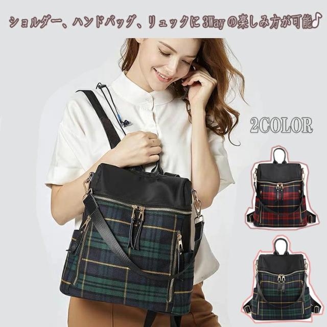 リュック トート リュックサック トートバッグ 2WAY 大きめ リュック レディース 小さめ チェック柄 タータンチェック 防水 軽量 人気 リュックサック 大人 女の子 通勤 通学 旅行