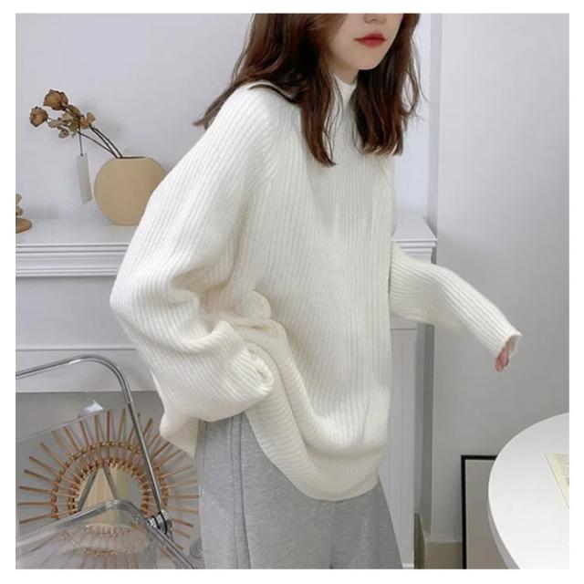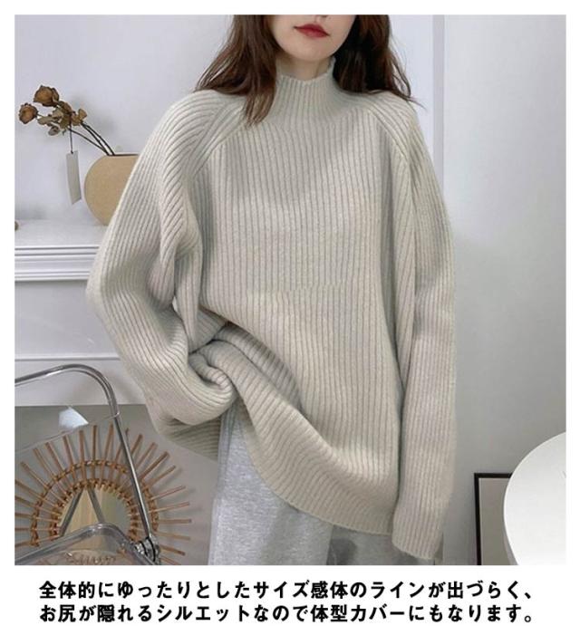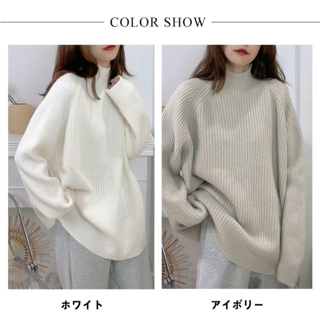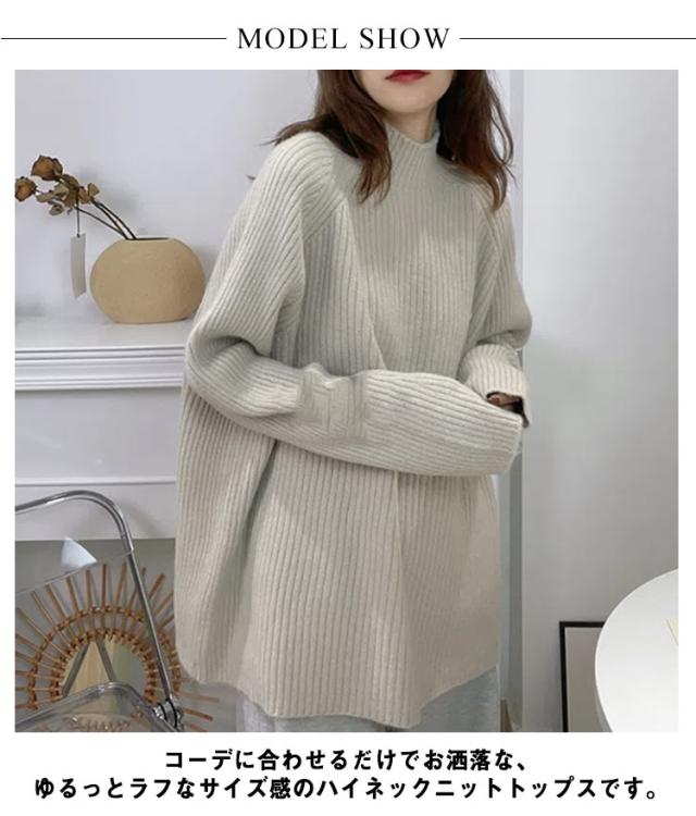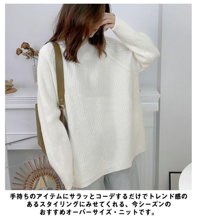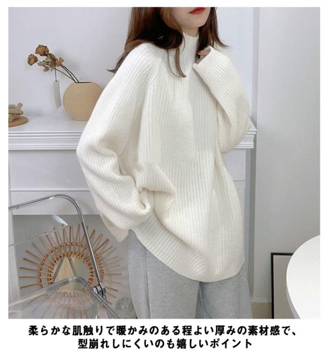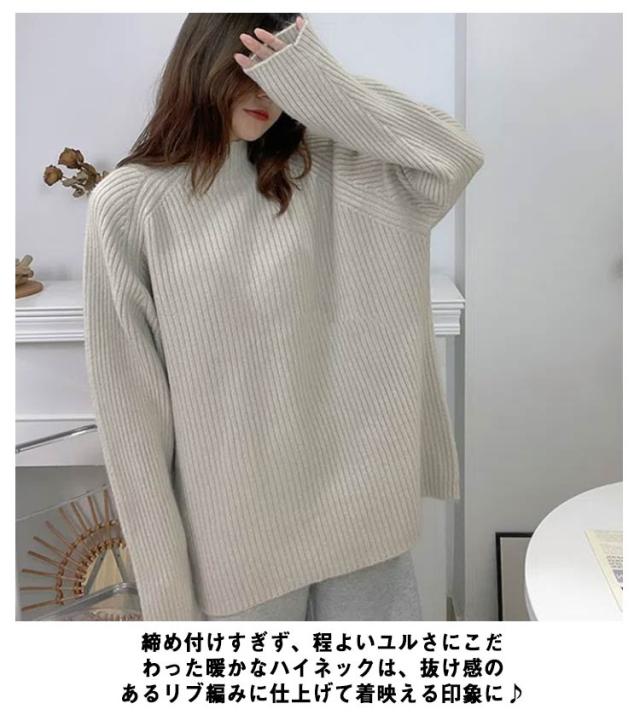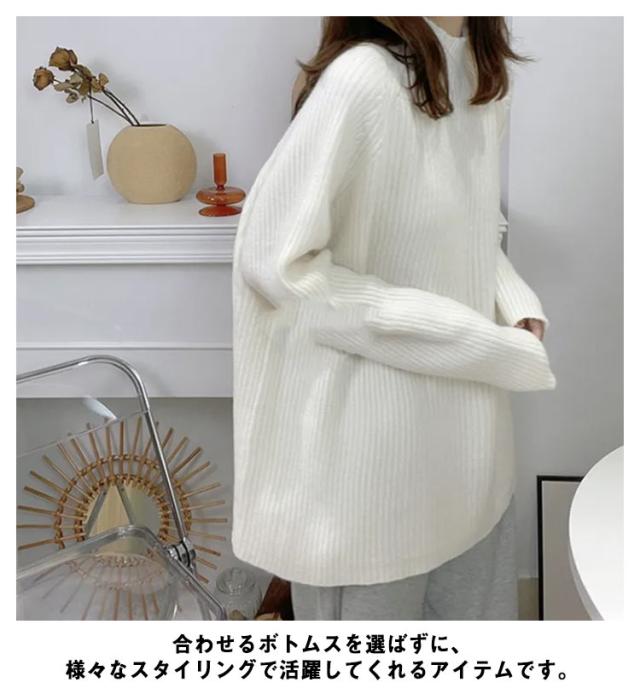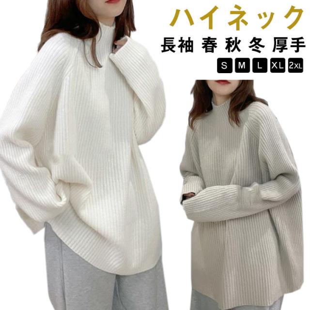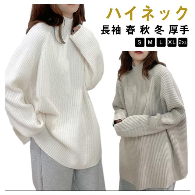 ハイネック プルオーバー レディース ニット 秋 長袖 春 ボトルネック ニット セーター アイボリー リブニット 冬 トップス オーバーサイズ 体型カバー 厚手 韓国風 きれいめ オフィス フェミニン ホワイト ルーズ