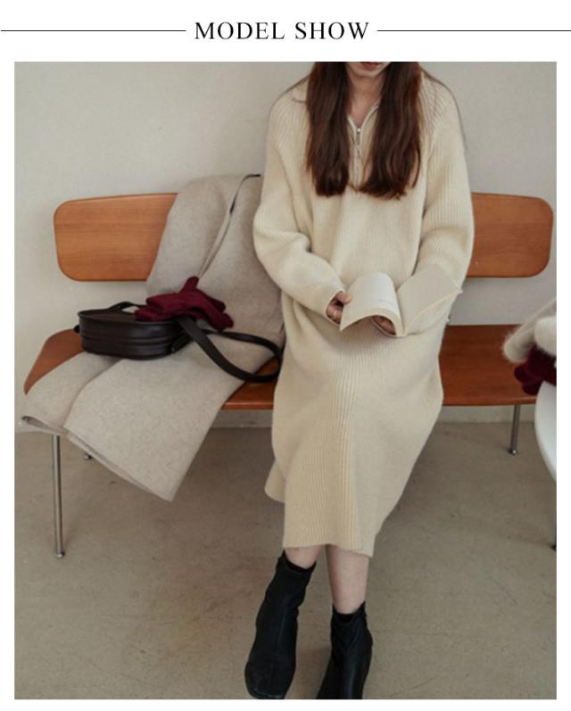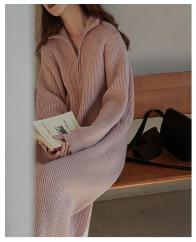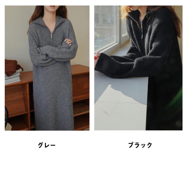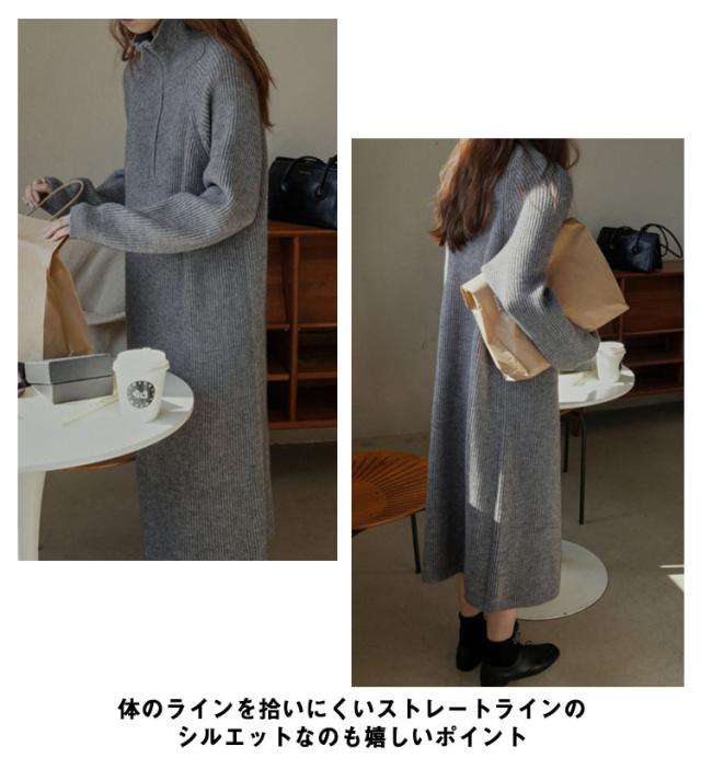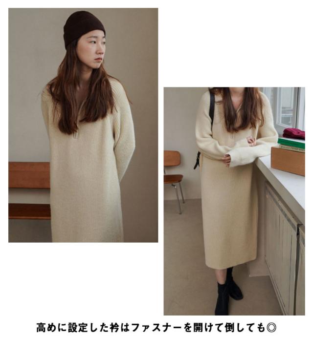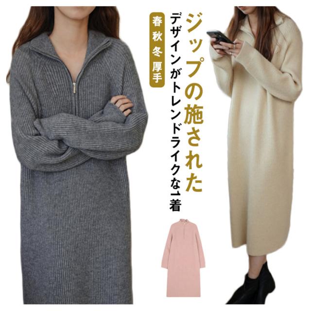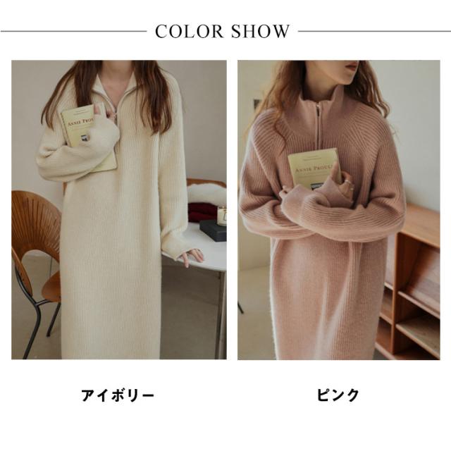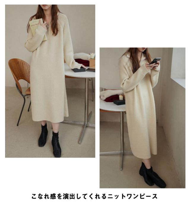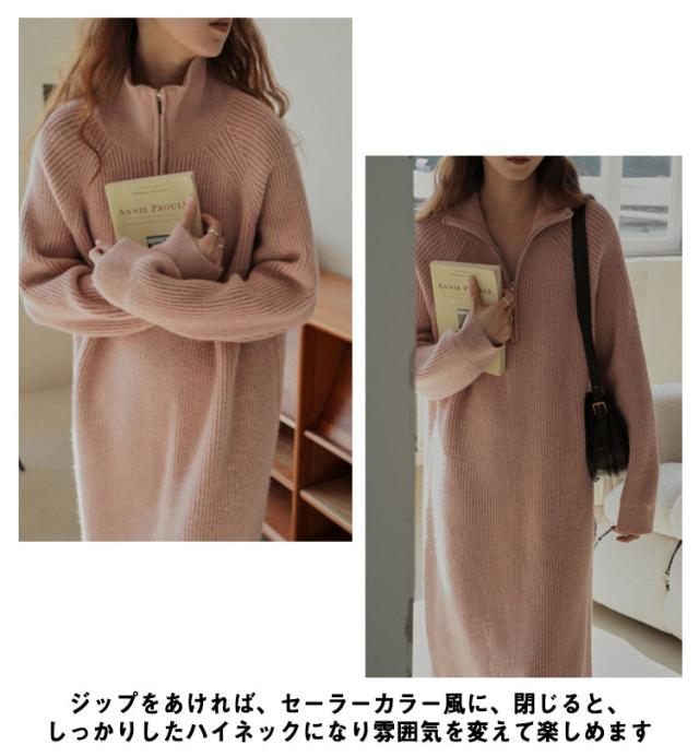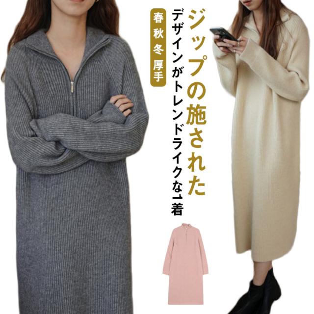 ロング ワンピース 春 レディース ニットワンピース 30代 長袖 冬 ハーフジップ ハイネック 秋 ニット リブニット オフィス ゆったり 体型カバー きれいめ 通勤 厚手 フェミニン 20代 セーラーカラー セーラーカラー