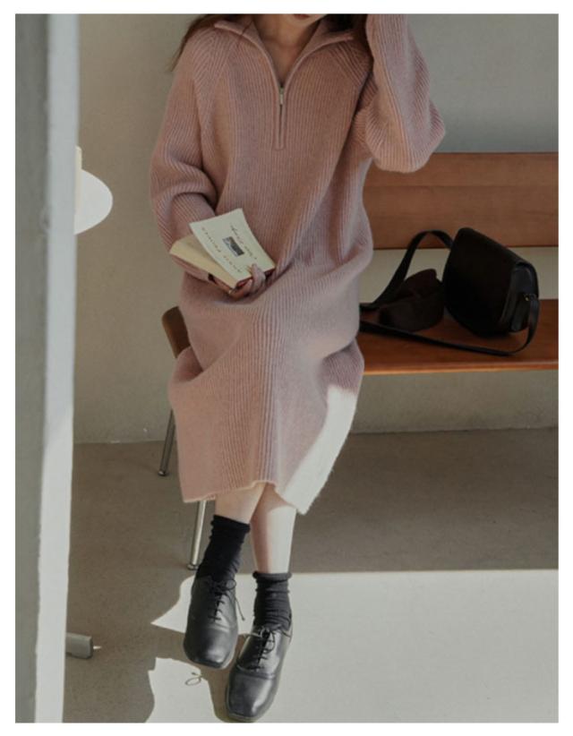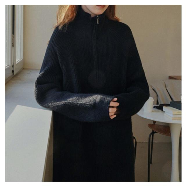 | ジップの施されたデザインがトレンドライクな1着 こなれ感を演出してくれるニットワンピース 高めに設定した衿はファスナーを開けて倒しても◎ ジップをあければ、セーラーカラー風に、閉じると、しっかりしたハイネックになり雰囲気を変えて楽しめます 体のラインを拾いにくいストレートラインのシルエットなのも嬉しいポイント 起毛感がありしっかりとした肉厚のもっちりとしたニット素材 | |