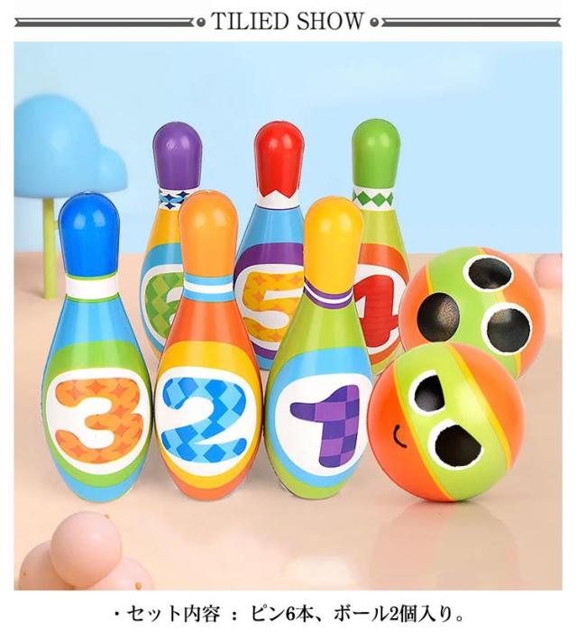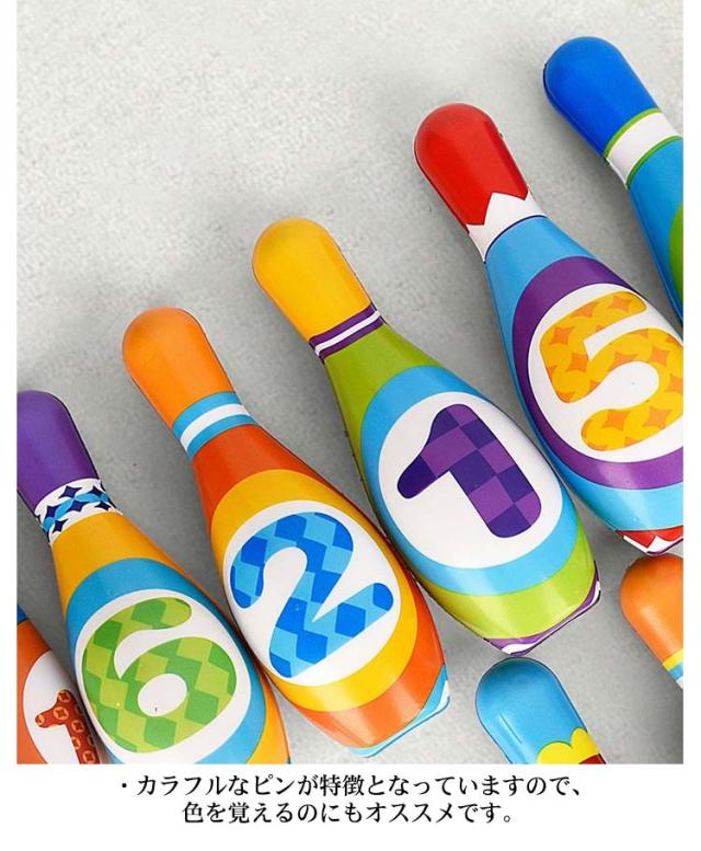 | ・お部屋で遊ぼう!ソフトボーリング遊びセットです。 ・セット内容 : ピン6本、ボール2個入り。 ・並べたピンをめがけてボールを転がして遊びます。 ・幼児をはじめとするお子様はもちろん、親子で遊べる知育玩具となっています。 ・軽くて柔らかい素材で当たっても痛くありません。 ・お子様の目、記憶力、思考力(どうやったら倒せるか?など)などの育成に、目で見て楽しみ、触って遊んで楽しめるボーリンセットになっています。 ・カラフルなピンが特徴となっていますので、色を覚えるのにもオススメです。 | |