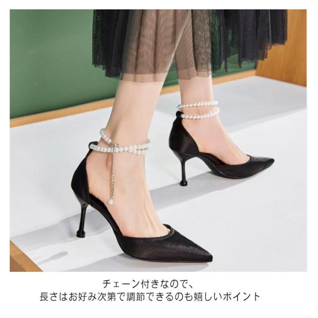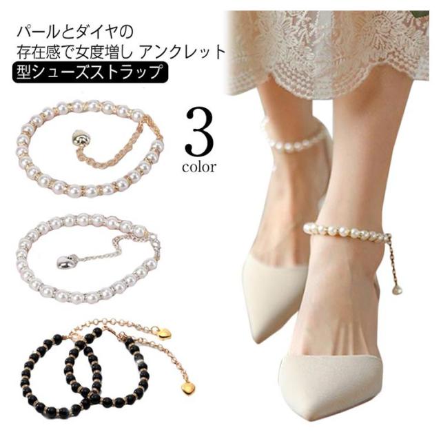 アクセサリー シューズストラップ パンプスストラップ シューズバンド アンクレット 送料無料 アンクレット パンプスベルト 美足 アンクルストラップ 1ペア シューズチェーン 脱げ防止 おしゃれ パール チェーン パンプスベルト