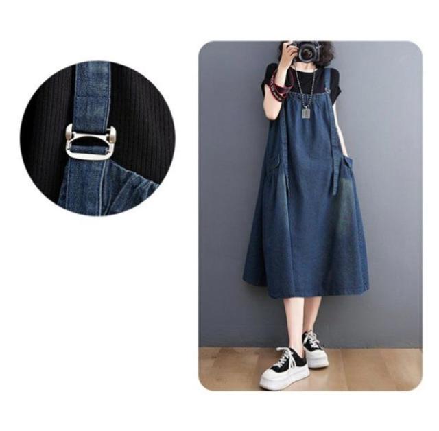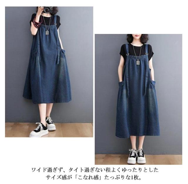 古着風 サロペットスカート ワンピース デニムスカート ボトムス ミモレ丈 ジャンパースカート ワンピ ロングスカート ジャンスカ サスペンダー オーバーオール カジュアル 定番 大人 ナチュラル ひざ丈